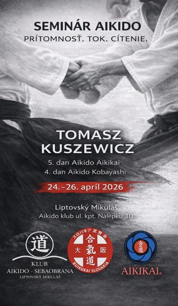 Pozývame vás na aikido seminár, spojený so skúškami. Povedie T. Kuszewicz sensei, 5. dan aikikai, 4. dan Kobayashi ryu