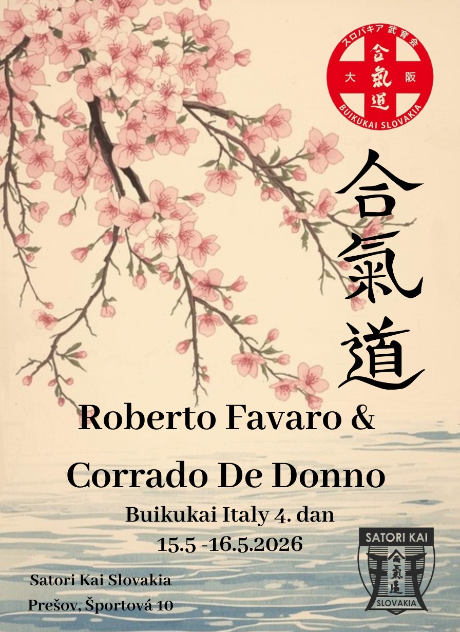 Pozývame Vás na seminár AIKIDO Buikukai Italy – Roberto Favaro 4 dan a Corrado De Donno 4 dan Otvorený tréning, určené pre každého záujemcu, nezávisle na škole, alebo organizácii. info +421 911 542 975